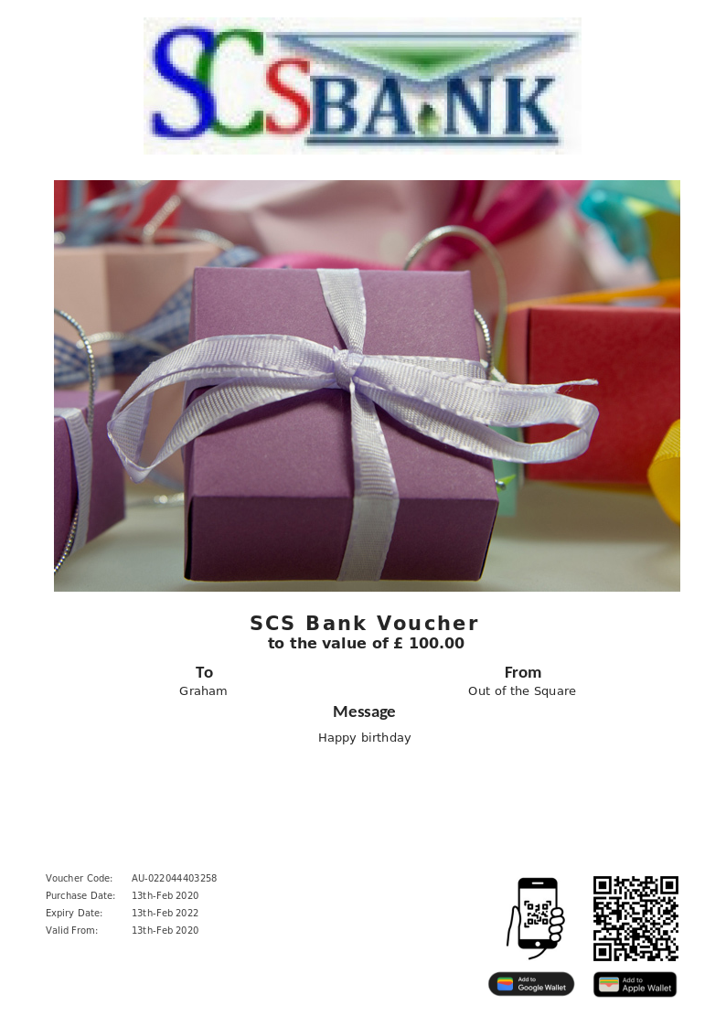 SEND YOUR PERFECT GIFT WITH SCS BANK
